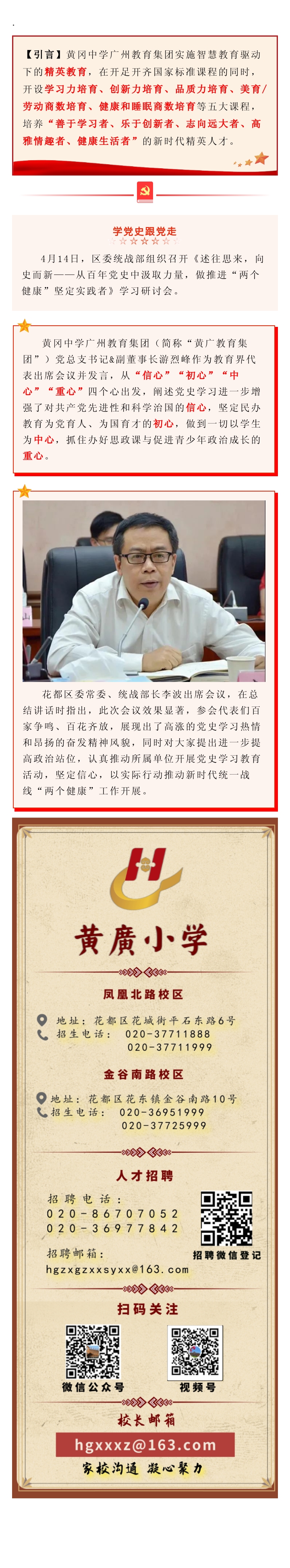 【述往思来,向史而新】黄广教育集团游烈峰党总支书记出席区委统战部党史学习会议并作“四心”发言