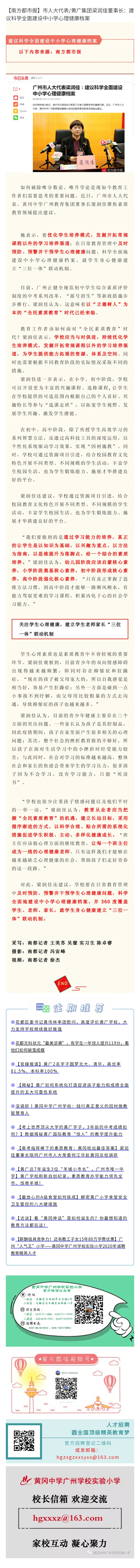 > 【南方都市报】市人大代表/黄广集团梁润佳董事长:建议科学全面建设中小学心理健康档案