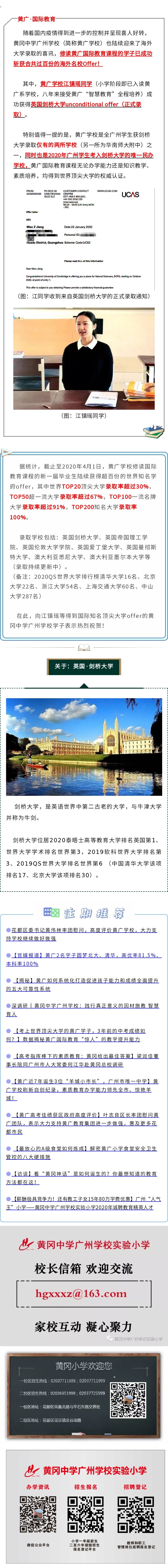 【上剑桥~全广州仅两所学校--华附/黄广学子获剑桥大学录取】黄广邀您见证国际教育卓越成果(2020录取持续更新中)