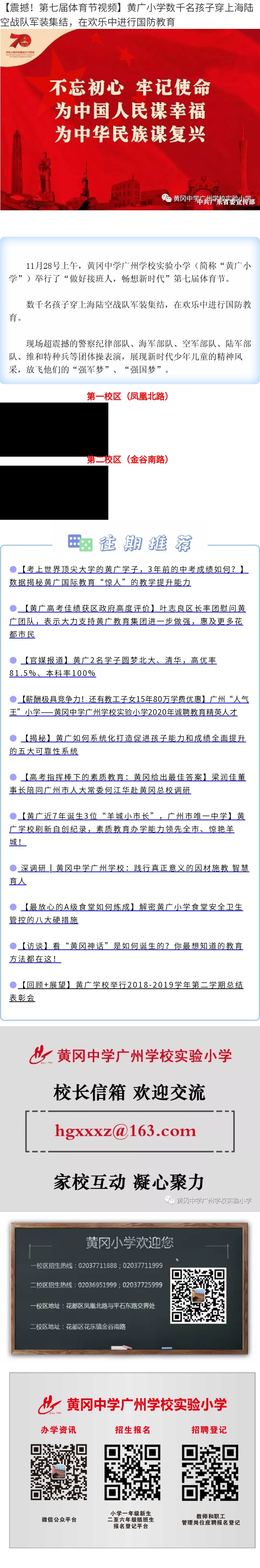 > 【震撼!第七届体育节视频】黄广小学数千名孩子穿上海陆空战队军装集结,在欢乐中进行国防教育
