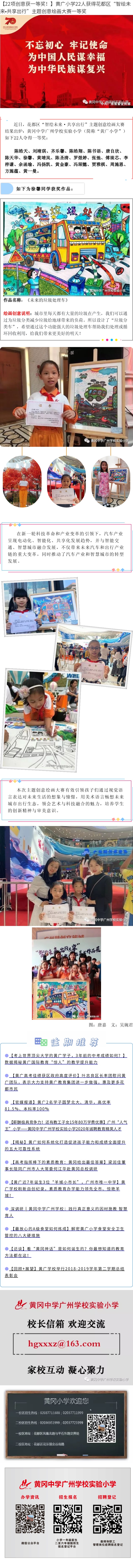 > 【22项创意获一等奖!】黄广小学22人获得花都区“智绘未来•共享出行”主题创意绘画大赛一等奖