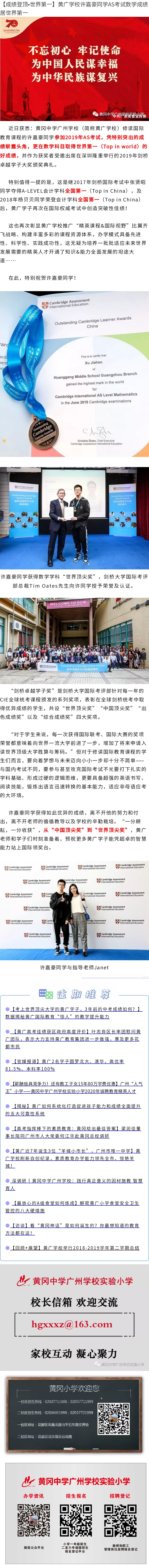 > 【成绩登顶•世界第一】黄广学校许嘉豪同学AS考试数学成绩居世界第一