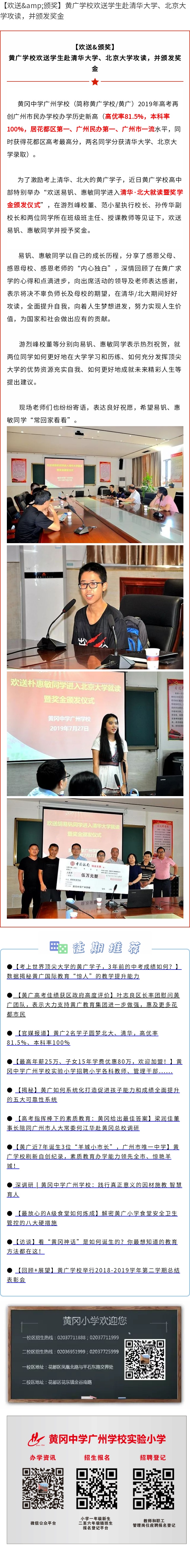 > 【欢送&颁奖】黄广学校欢送学生赴清华大学、北京大学攻读,并颁发奖金