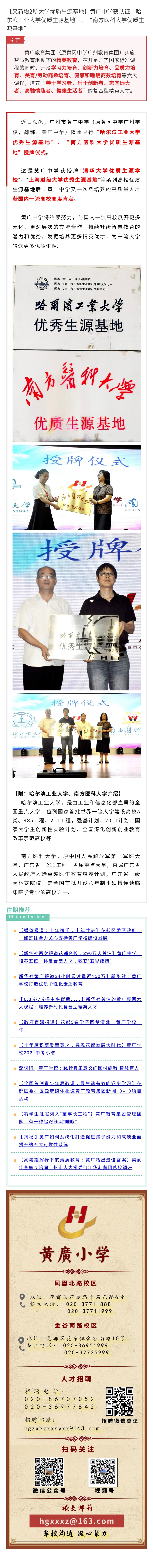 > 【又新增2所大学优质生源基地】黄广中学获认证“哈尔滨工业大学优质生源基地”、“南方医科大学优质生源基地”