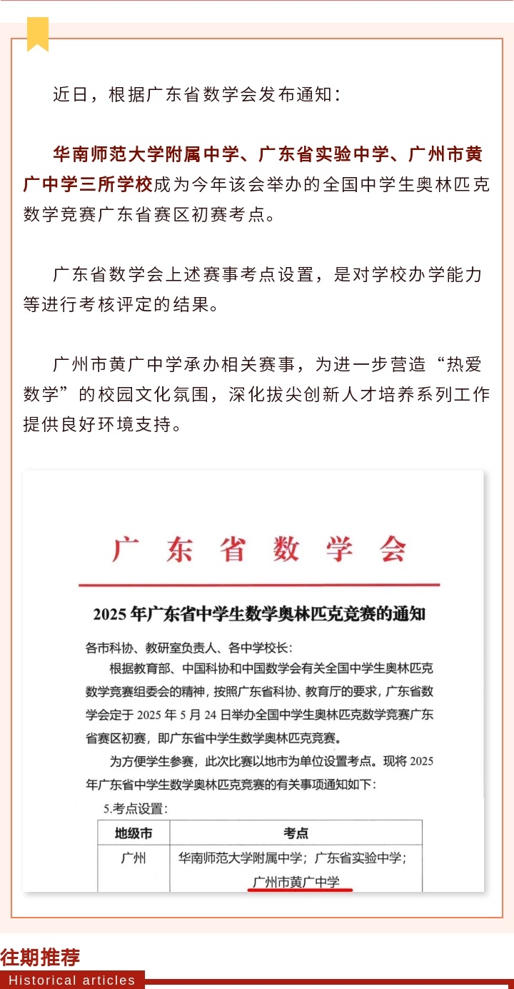 > 广州这三所学校,为全国数学奥赛(广东赛区)考点