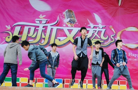 学校教师和领导们也不甘示弱,生活部的全体老师表演的精彩快板引来学生们阵阵尖叫;英语老师赵爽那专业级别的歌声使大家倾倒。