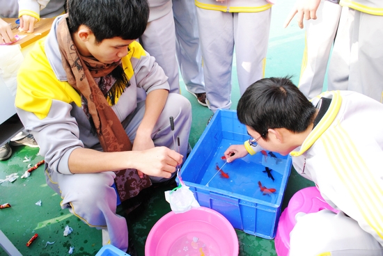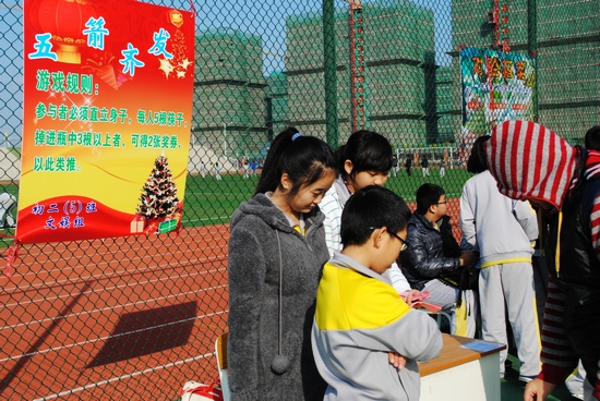 上午9点30分,活动正式开始,游园项目丰富多样,包括知识问答、投飞镖、你画我猜、数钞票、打保龄、钓金鱼、跳舞等40多项。这些精彩的游戏极具人气,游园刚开始,各个游戏前就聚满了学生。精彩有趣的游戏,以及丰厚的奖品不仅吸引了很多学生,也吸引了不少学生家长的到来。排队玩游戏的长龙格外显眼,同学们脸上都洋溢着兴奋的笑容,他们玩在其中并乐在其中。活动如火如荼地进行着,尽管天气寒冷,却挡不住大家的欢快与沸腾,没有一丝的疲惫。