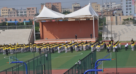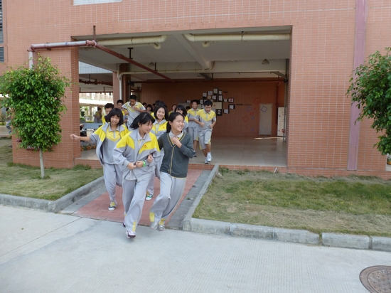 10时整,总指挥江楚桥发出指令“疏散演练开始”,顿时,一阵尖利的警报声在校园里响起,在老师们有条不紊的指挥下,一阵阵急促的脚步声回荡在走廊,全校2000多名师生仅用2分多钟就紧急地疏散到空旷的运动场!整个疏散过程紧张而有序。