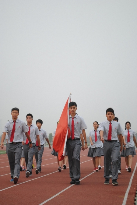 早晨6时50分,在我校田径场,首届国旗班队员把鲜红的五星红旗交到了新国旗班队员手中,新国旗班全体队员以标准而规范的动作完成了首次升国旗任务,同时也预示了新一届国旗班即将继往开来,把国旗班的光荣事业发扬光大,将国旗班的伟大精神薪火相传!接着,敖道威同学代表新国旗班队员发言。他表示,参加国旗班升旗使自己陶冶了爱国主义情操,受到了终身难忘的教育。这是一项无上光荣的使命,大家一定要像爱惜自己的生命一样去爱惜国旗,将升旗进行到底。