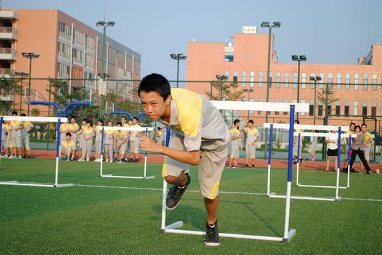 秋日的足球场,艳阳高照,人声鼎沸,热闹非凡。决赛的序幕还没正式拉开,各班队员都开始了赛前的准备,个个摩拳擦掌。下午5时许,发令枪一响,决赛正式开始。只见各班女选手们首当其冲,连续跨过四座“小山”,涉过四条“小河”,竭力向“对岸”本班的男选手交接。全体参赛选手不畏艰险,顽强拼搏,跌倒了,爬起来,“跋山涉水”,奋勇向前。他们的精彩表现,为决赛增添了无穷乐趣。同学们纷纷为选手们加油助威,赛场上呐喊声、欢笑声汇成一片欢乐的海洋。经过激烈角逐,7班、1班和4班分别荣获此次决赛前三名。同学们不论输赢,都难以掩饰兴奋的表情,大家个个笑逐颜开,兴致盎然,整个决赛在和谐、愉快的氛围中圆满结束。