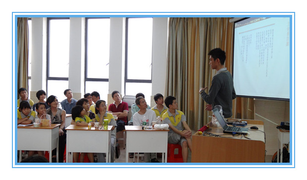 下一个用要向家长们介绍的是我们的英语沙龙活动。魏天哲同学给我们展示了两次活动的PPT以及活动中的照片。他的介绍包括了这个活动的开始与发展,说出了准备时的不容易以及与外教交谈时的情况。我们对这个活动特别有信心,也一定会尽力将它办好。
