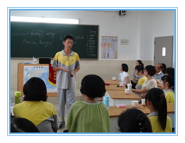 说完活动后,是时候向家长们谈谈我们的学习了。我们的PGA中心主任董老师向大家介绍了PGA的评分标准,学习要求,学习建议和对我们的总体评价,这个环节确实让人心急。看得出爸爸妈妈眼神中的一丝忧虑与关心。班主任彭老师也进行了发言。她重点介绍了国际部的文化专题系列课程。文化专题课是将政治、历史和地理课程做了改革,以专题的形式呈现,比如世界自然灾害与人类、案例中的美国宪法修正案、心理学入门等等专题。这些都是让我们和父母很感兴趣的话题。