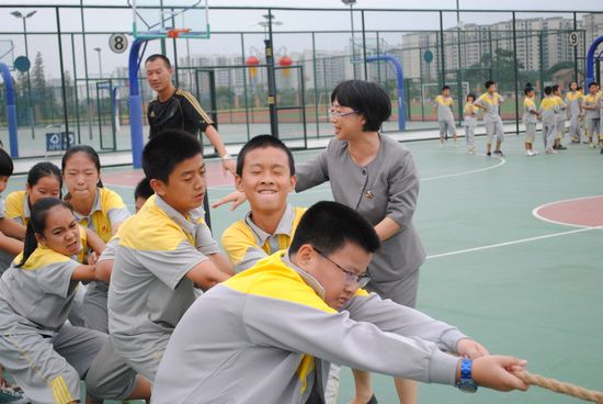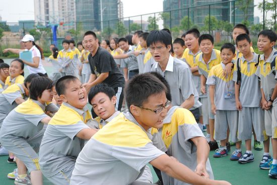 2012年9月25日广州市黄广中学七年级举办拔河比赛。本次比赛共有16个班参加,以淘汰制方式进行比赛,各班选出十名男生十名女生参赛,分别以三局两胜决定胜负。在比赛中学校德育处、教务处、艺体发展处、年级组积极组织,公平、公正裁判。比赛场上同学们活力四射,氛围热烈,赛场上队员们以饱满的热情全身心的投入到比赛中,场外同学和老师们欢呼、加油。经过一节课的紧张激烈的比赛,依次决出前八名进入星期五的半决赛,赛后学校将对获奖班级给予奖励。