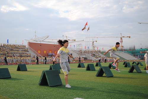 下午5点整,体育老师一声令下,各班第一名队员上场了。十五名队员代表各自的班级,似蛟龙出海,从①号位出发。只见八(4)班队员一马当先,运用双脚跳跃的方式,飞快地跨过了第一道障碍物,八(1)班队员紧跟其后,其他班级的队员也不甘示弱,奋起直追。队员们奔跑至第二道障碍物处,趴下身来,手贴在地上,像穿山甲一样,采用钻的方式钻过跨栏。然后跑至对面本班队友②号位,与队友进行迎面击掌接力,接掌的队友按照通过各障碍物相同的方法折返。全体参赛队员你追我赶,依次奋进。霎时间,一阵阵加油声,呐喊声响彻云霄。经过激烈的角逐,八(4)班以5’16”14的成绩获得第一名,八(1)班以5’22”89的成绩获得第二名,八(11)班以5’25”61的成绩获得第三名,还有八(15、9、8、5、7)等,一共八个班级,将进入后阶段的决赛。