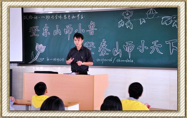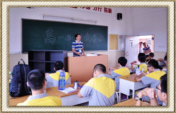 一大早,校门前新修的大道上车水马龙,热闹非凡 架空层前班主任热情的接待学生家长 军训前的班级动员会 情绪饱满、整装待发 11:30,全体新生在班主任和生活老师的带领下,乘车前往军训基地,开始了 新学期的第一科必修课——国防教育课