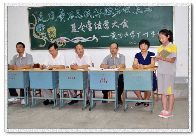 2012年7月9日—14日,广州市黄广中学成功举行了2012暑假“走进黄广总校,体验名校生活”夏令营。7月14日晚,“走进黄广总校,体验名校生活”夏令营结营仪式在黄广中学“奥德赛楼”举行。黄广中学总校工会主席王实泉先生应邀出席了仪式,广州学校江楚桥副校长、孙传华校长助理、范小梁校长助理和参加夏令营的全体师生欢聚一堂,回顾了一周来的夏令营行程和收获,表达了对黄广中学总校领导、老师的感谢和对总校的依恋之情。结营仪式由广州市黄广中学校长助理、德育处主任范小梁老师主持。