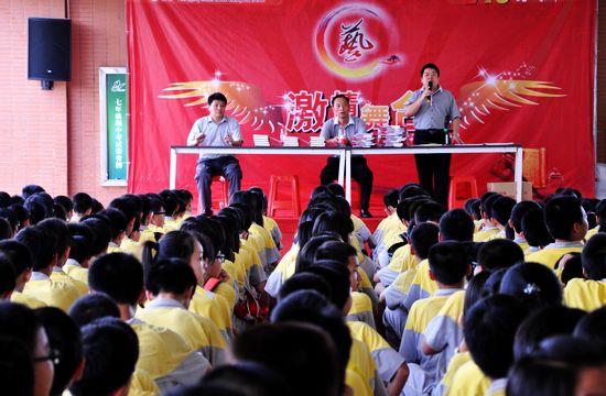 朱迎春主任回顾了近一年来七年级所取得的成绩,并重申学校将拿出400多万元重奖品德优秀且两学期期末成绩综合排名前50℅的学生,以此激励学生刻苦学习、力争上游。