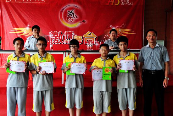两名优秀学生代表发言,介绍自己的学习方法和备考经验。随后的颁奖仪式将会以推向高潮。蒋晓明主任宣布受表彰的学生名单,其中包括五月月考前100名的学生和华罗庚杯比赛获得一、二、三等奖的46名学生。随着一个个名字被宣布出来,全场掌声不断,经久不息。获奖学生高兴地与学校领导合影留念。