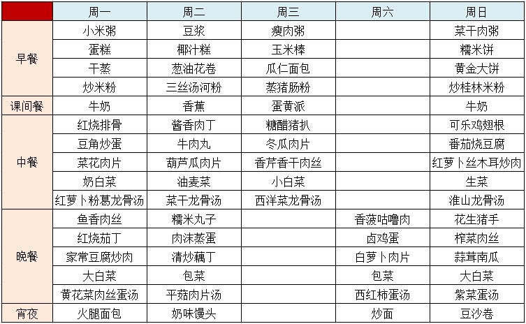 2013学年第一学期第三周菜谱