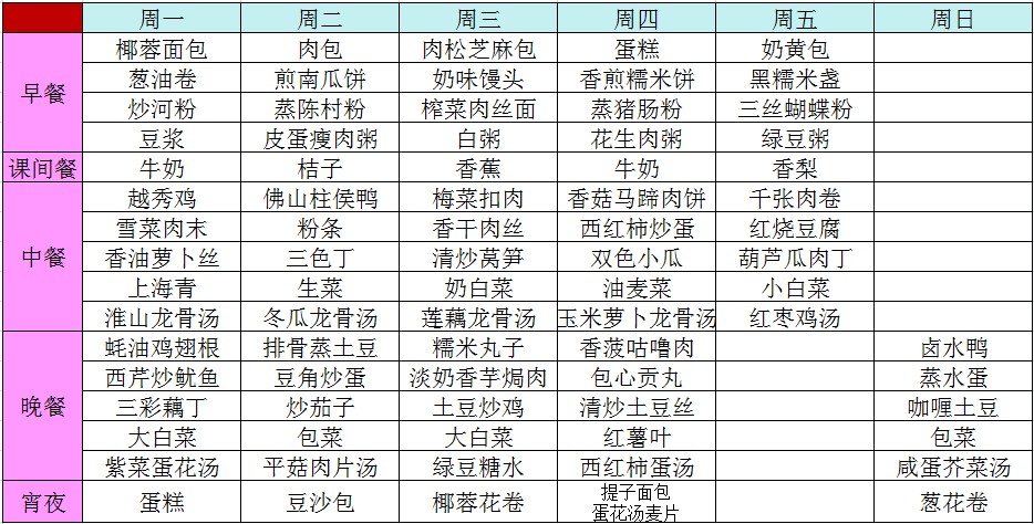 2013学年第一学期第十二周菜谱