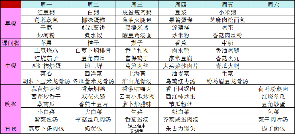 2014年秋季第十一周菜谱