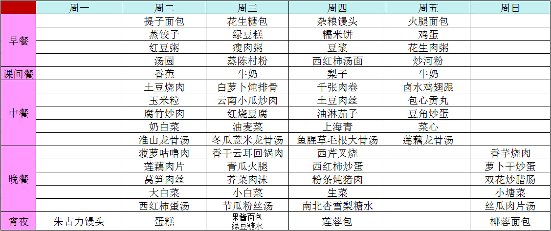 2015年春季第六周菜谱