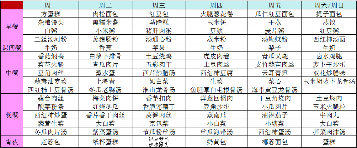 2015年春季第七周菜谱