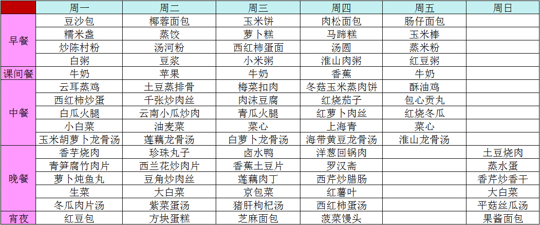 2015年秋季第十三周菜谱