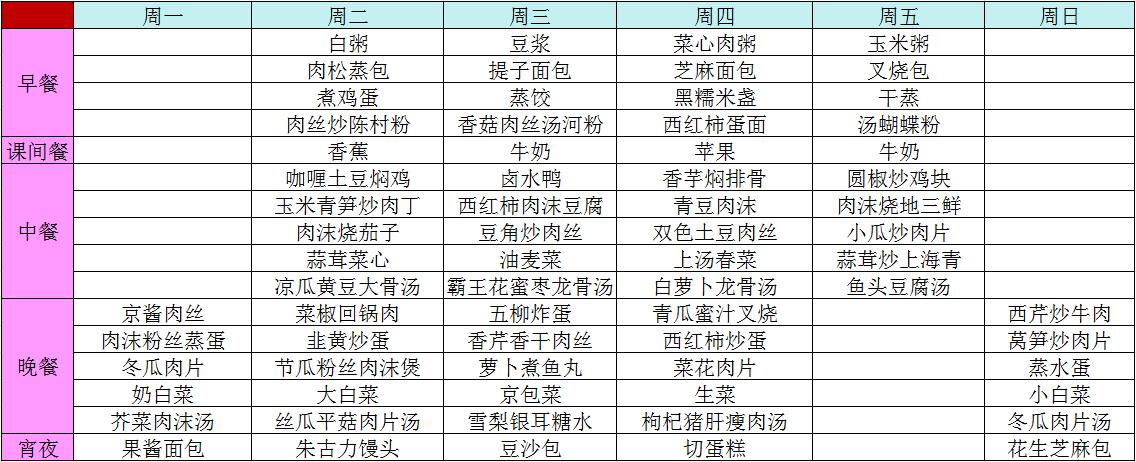 2016年春季第七周菜谱