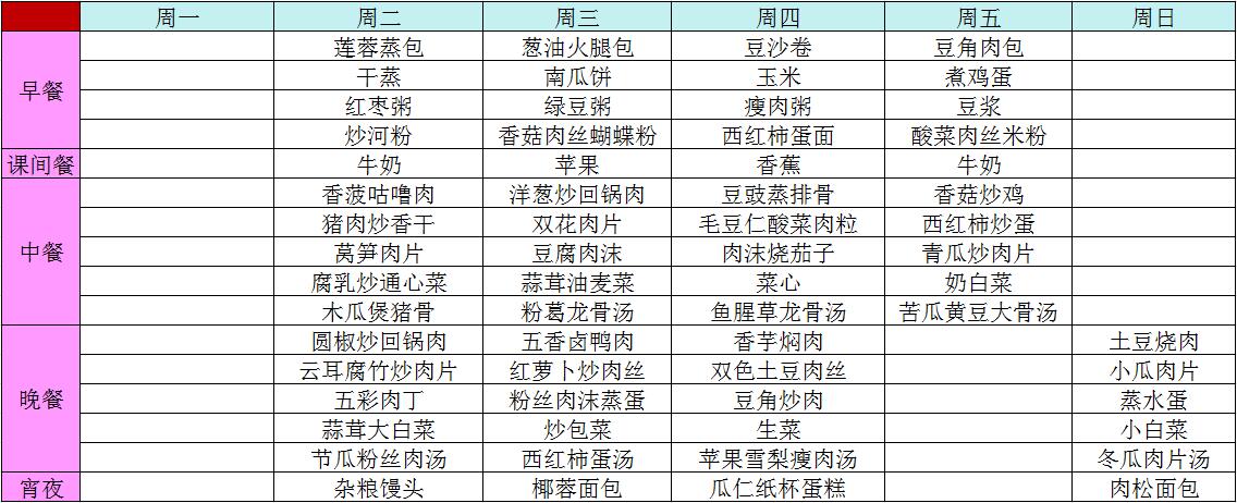 2016年春季第十一周菜谱