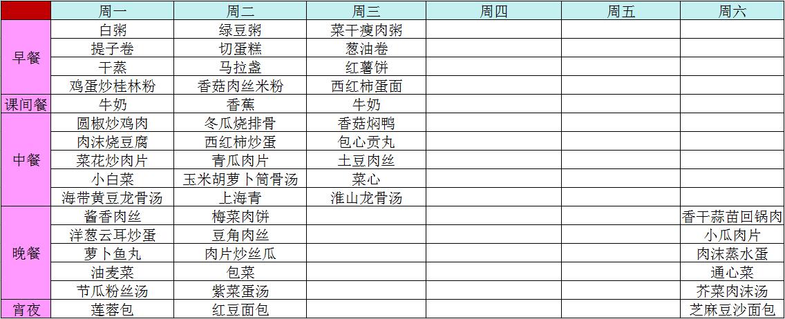 > 2016年秋季第三周菜谱