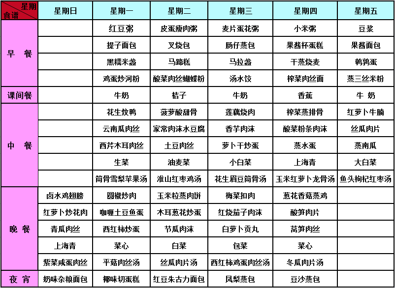 2016年秋季第十四周菜谱