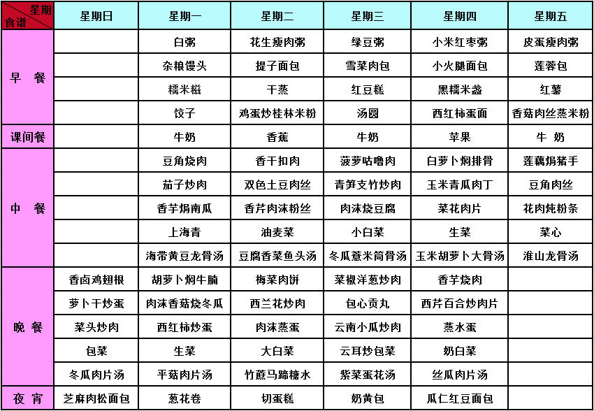 2017年春季第2周菜谱