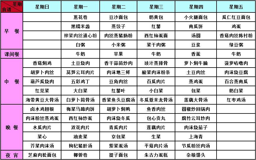2017年秋季第2周菜谱