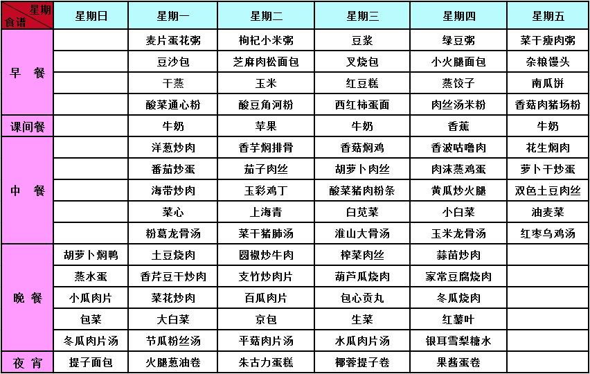 2017年秋季第7周菜谱