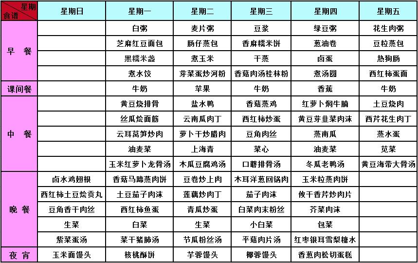 2017年秋季第14周菜谱