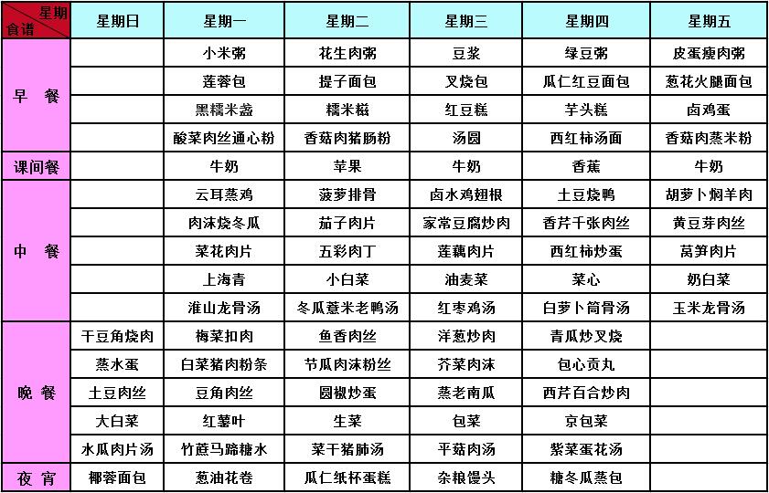 2017年秋季第17周菜谱