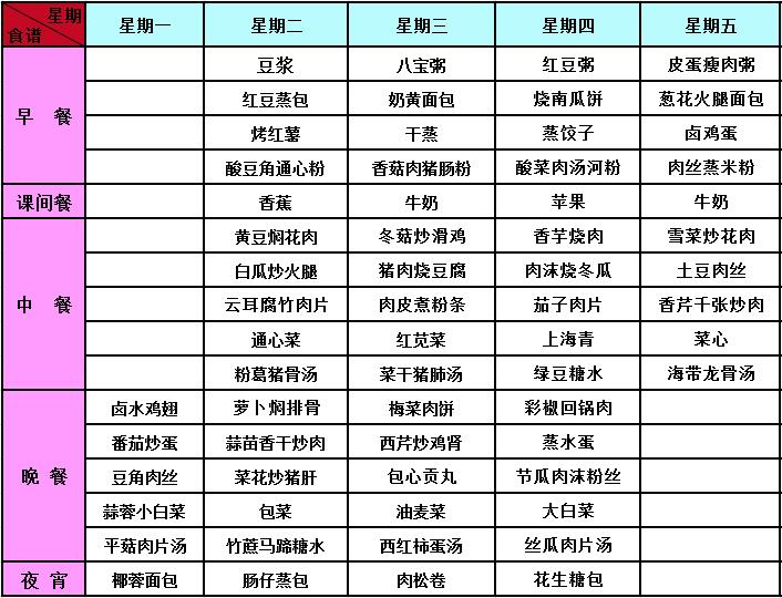 2018年春季第17周菜谱